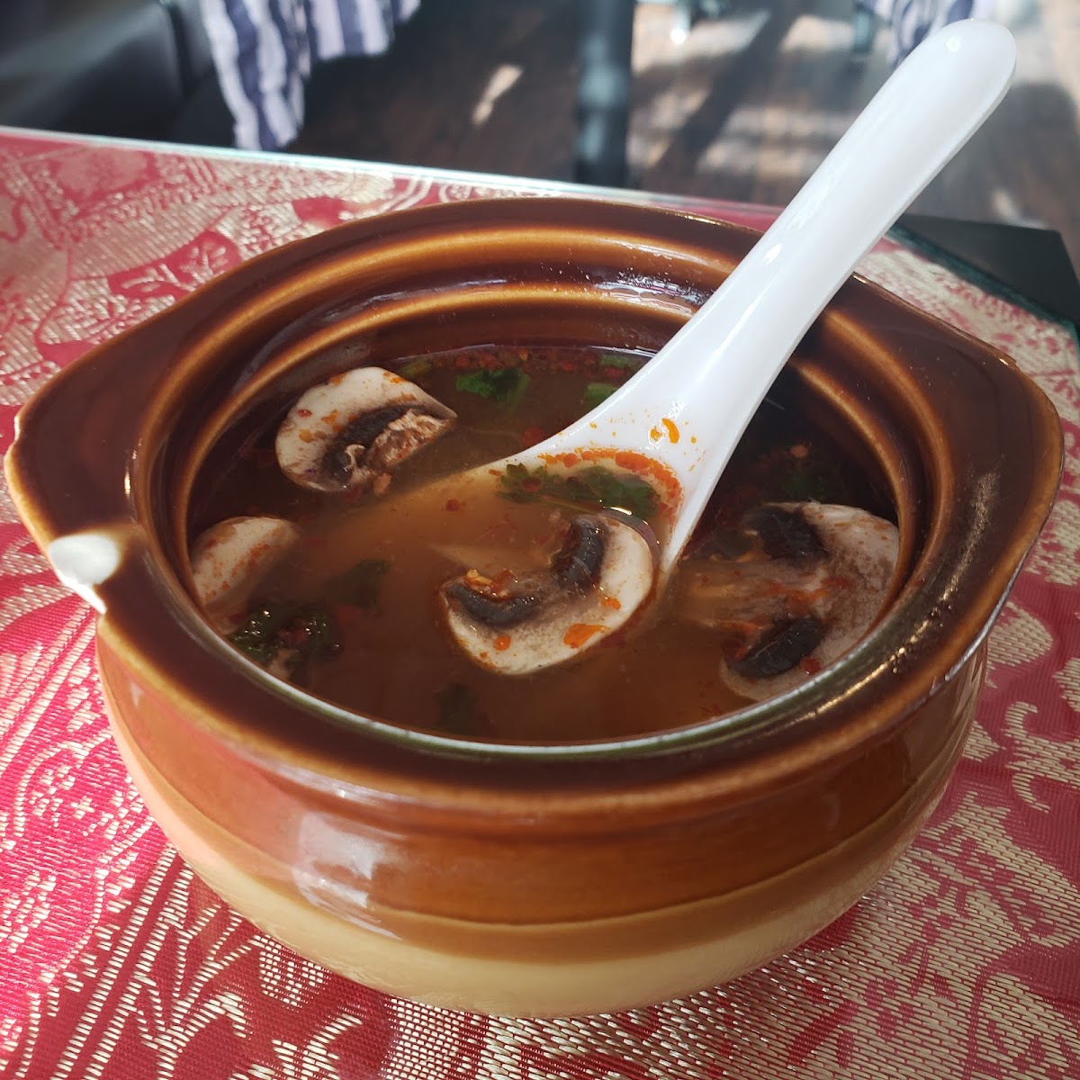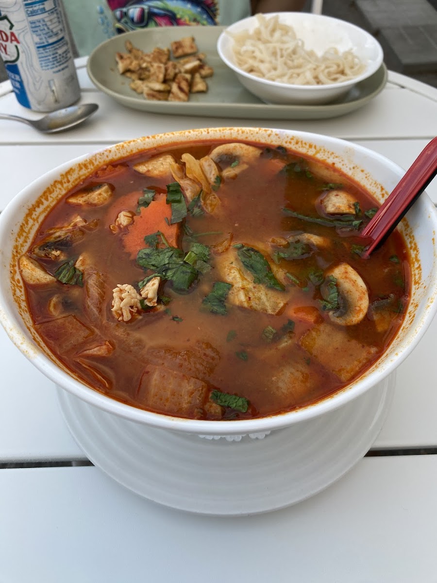First time trying Thai food. It was MAGNIFICENT! Had the duck with curry, chicken curry appetizer, and chicken tom yum. The nice lady was killing it by herself taking big tables and was still super attentive. Will definitely come back !