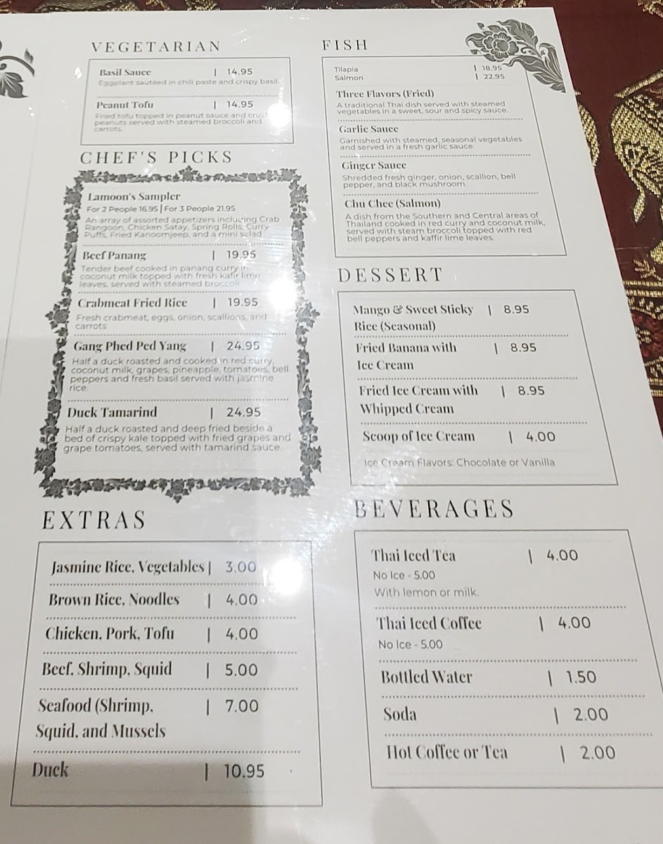 Lamoon’s Thai Restaurant Menu